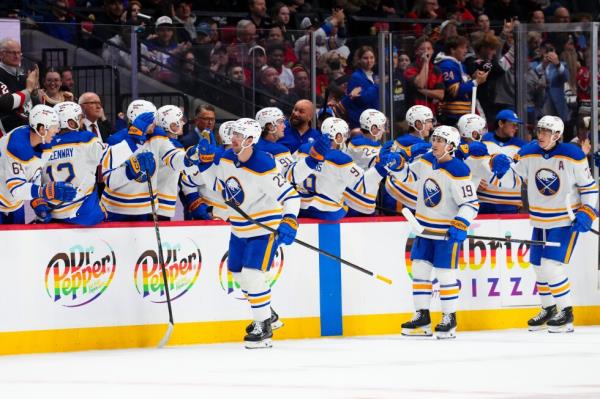 军刀队在赛季还剩六场比赛时锁定席位(周六晚些时候他们在华盛顿以2-6落败),目前正争夺东部联盟的头号种子位置。以46胜23负8加时负的战绩,布法罗正凭借35胜9负4加时负的惊人冲刺强势崛起——要知道去年12月初他们还垫底东部。
